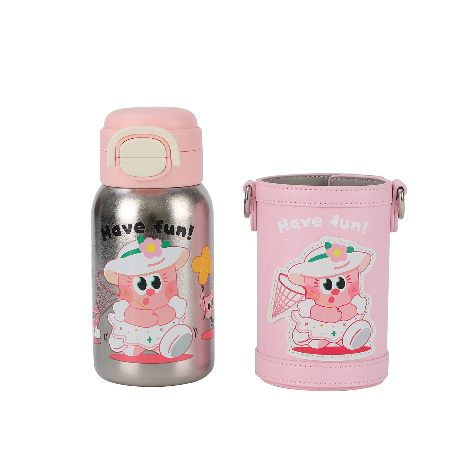 Protection: Each bottle includes a bespoke, hand-stitched PU Leather Sleeve with adjustable shoulder straps. It’s not just a fashion statement; it acts as a premium shock absorber against school-day drops and scrapes.